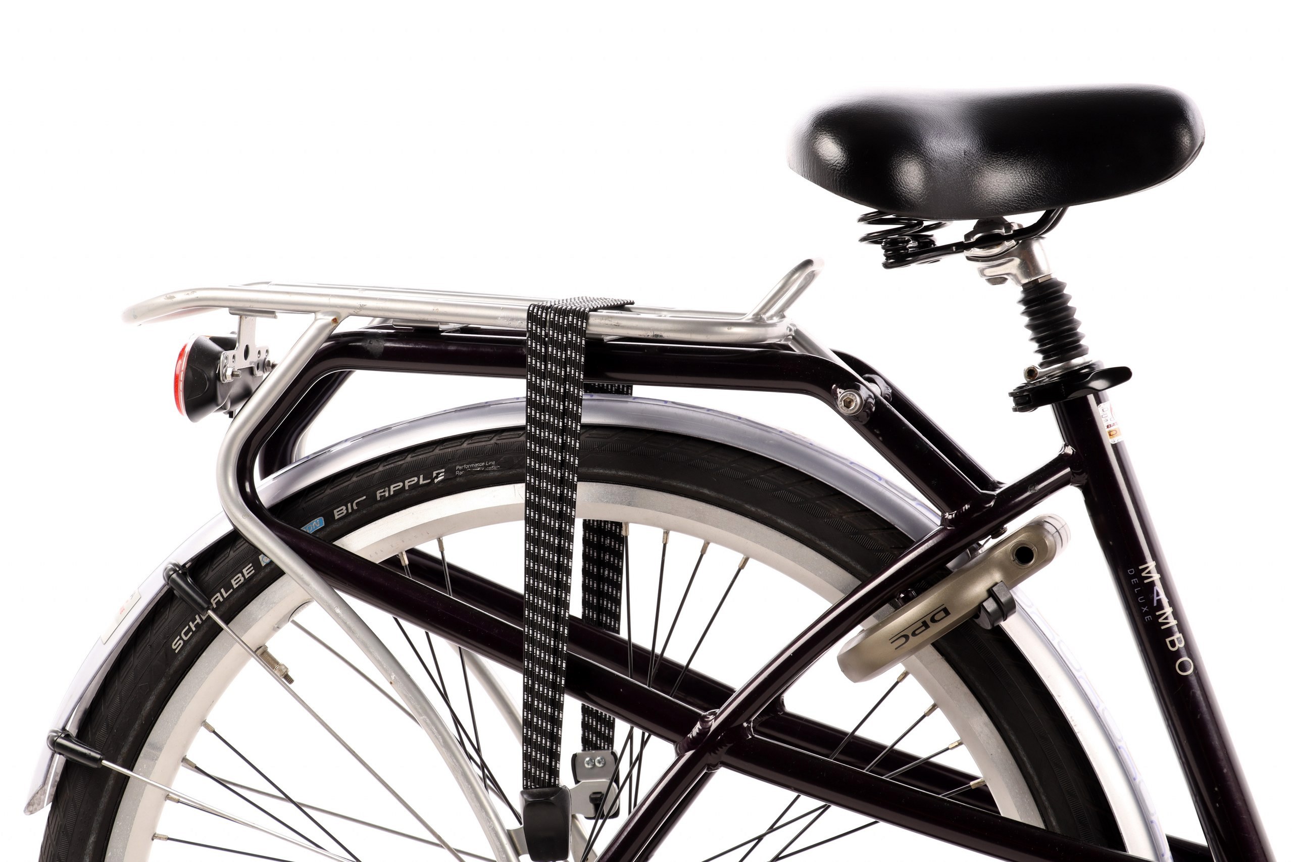 | Wyposażenie dodatkowe: | osłona łańcucha, bagażnik, gumy na bagażnik, dzwonek, stopka, oświetlenie, błotniki |
