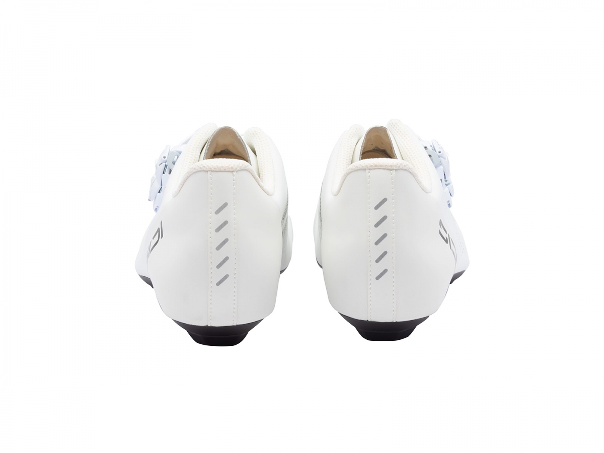 Podwójne pokrętła umożliwiają niezależne dopasowanie górnej i śródstopnej strefy cholewki, co ułatwia szybkie korekty także w trakcie jazdy. Sztywna, a zarazem lekka podeszwa karbonowa zapewnia natychmiastową reakcję na mocniejszy nacisk, a perforowana cholewka utrzymuje komfort termiczny podczas długich treningów i startów.