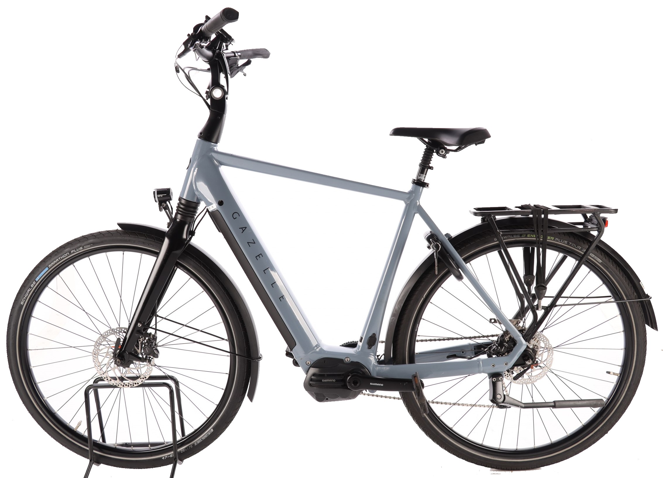 | Wyposażenie dodatkowe: | osłona łańcucha, bagażnik, gumy na bagażnik, dzwonek, stopka, oświetlenie, licznik, wspomaganie elektryczne, błotniki |