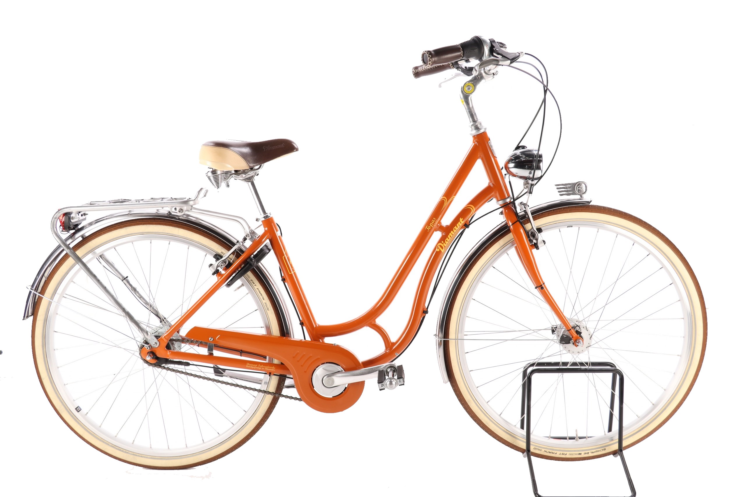 | Wyposażenie dodatkowe: | osłona łańcucha, bagażnik, dzwonek, stopka, oświetlenie, błotniki |