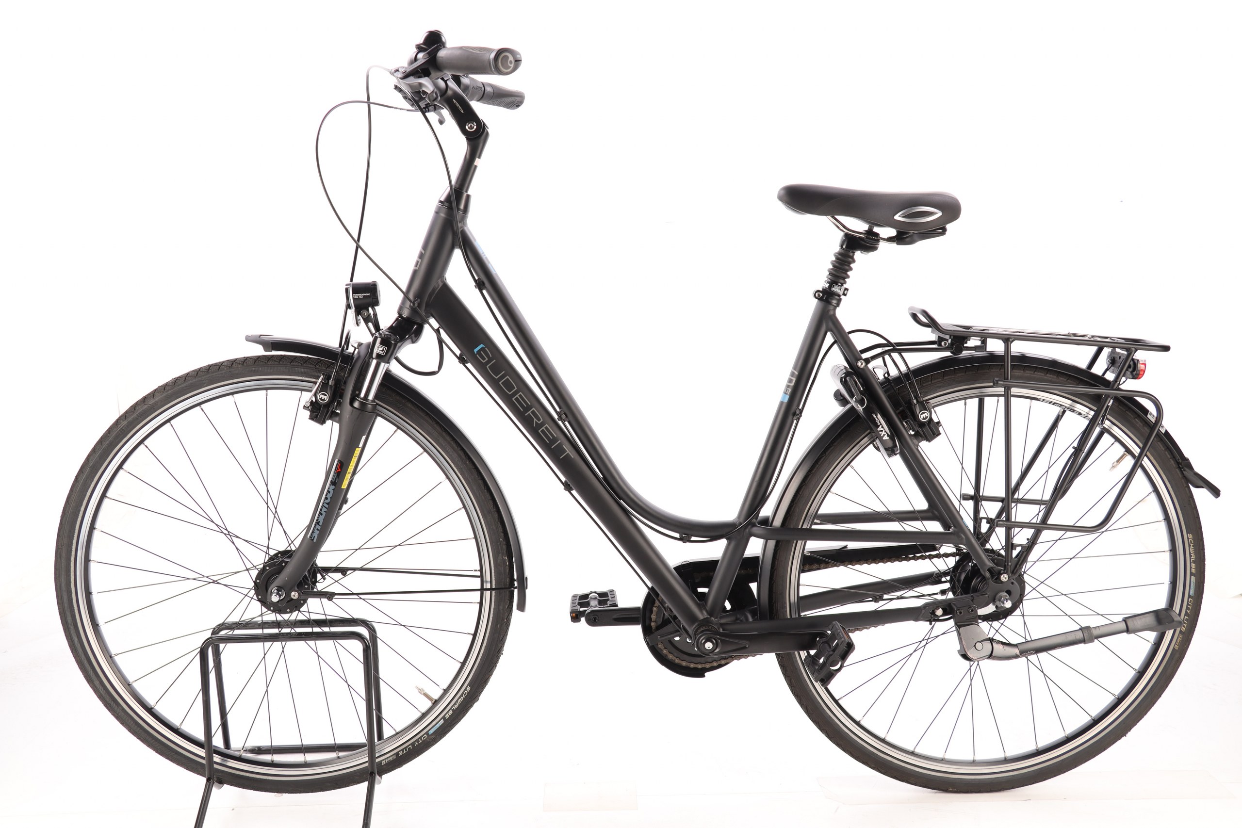 | Wyposażenie dodatkowe: | osłona łańcucha, bagażnik, dzwonek, stopka, oświetlenie, błotniki |